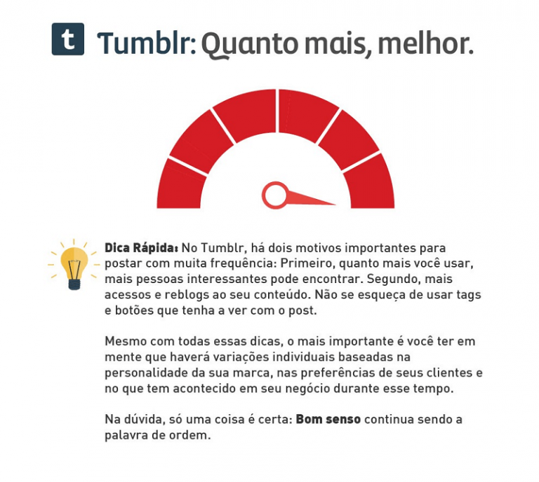 Dica rápida: no Tumbler, há dois motivos importantes para postar com muita frequência: primeiro, quanto mais você usar, mais pessoas interessantes pode encontrar. Segundo, mais acessos e reblogs ao seu conteúdo. Não se esqueça de usar tags e botões que tenham a ver com o post.